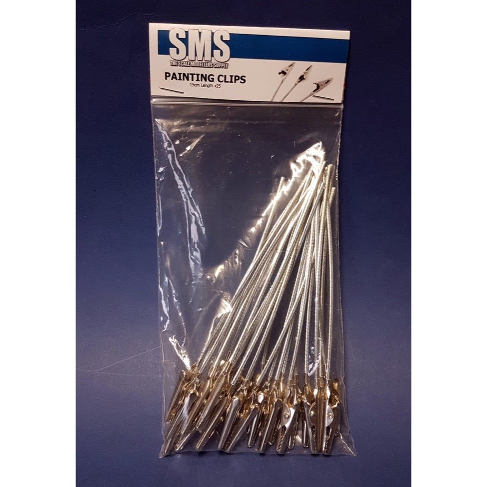 High quality painting clips designed to hold individual pieces for air brushing. 15cm in length - Pack of 25 in total.