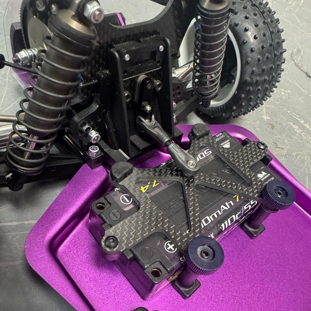 The chassis stiffener kit braces the centre to rear of the Cougar 2 Works chassis. This improves the consistency, and makes the car less susceptible to fore and aft flexing at the rear of the chassis. The kit can be assembled for forward or rearward LiPo position.