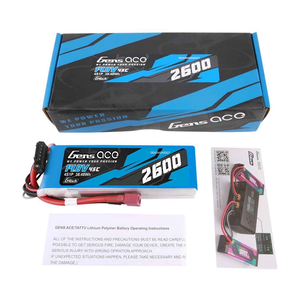 Gens Ace G-Tech 4S 2600mAh 45C 14.8V Soft Pack Lipo Battery (Deans)