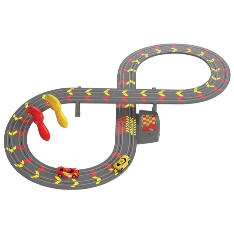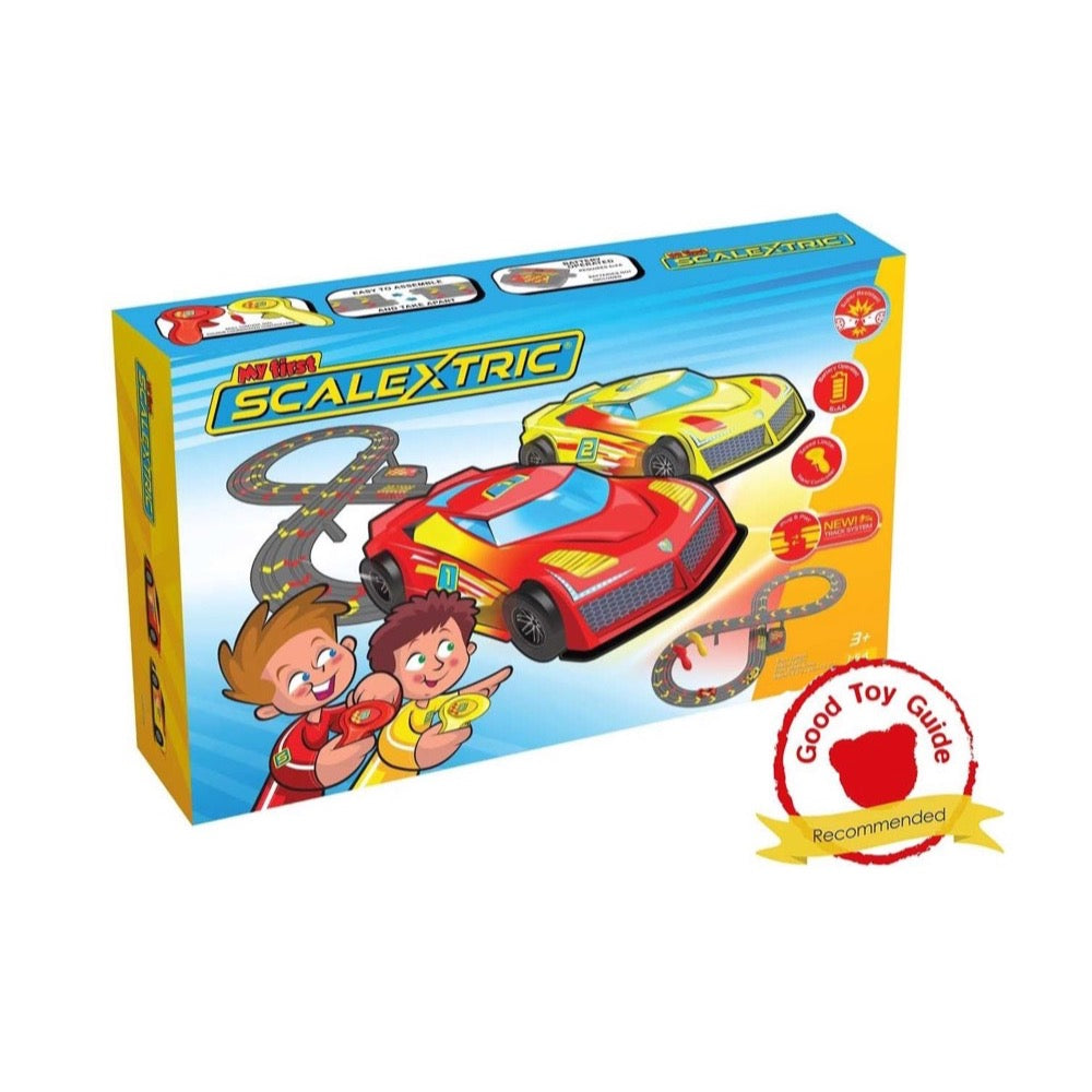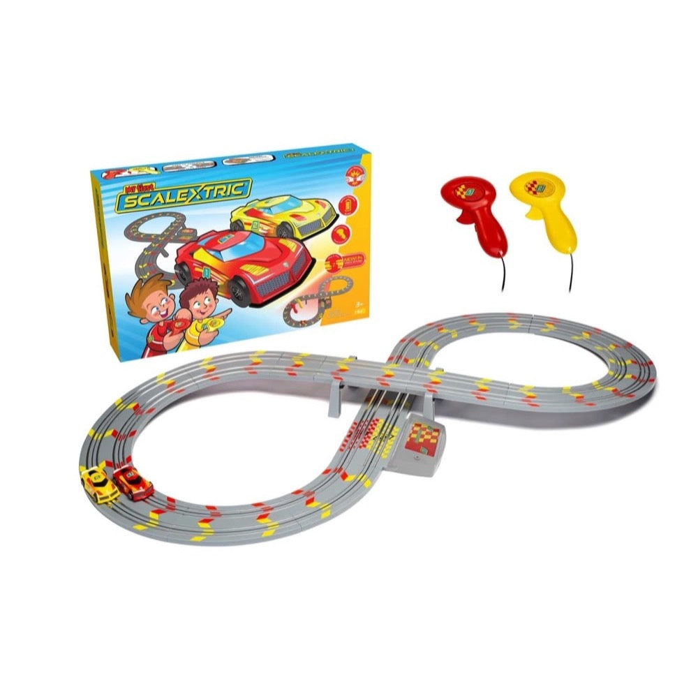 A great introduction to the world of Scalextric featuring an easy-to-assemble figure-of-eight track. This set is the ideal starting point for younger drivers aged 3+. The two sci-fi cars and adjustable power hand-controllers are colour coded in red and yellow to match chevrons on the circuit. This set is battery operated. Watch the video to find out more.