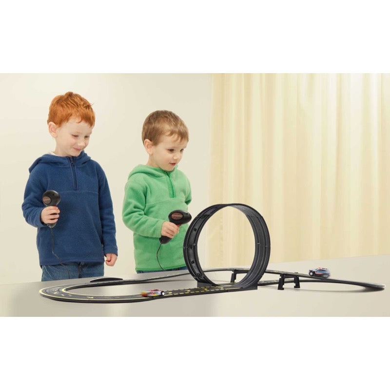 With an easy to assemble loop and half pipe, this new 1:64 Law Enforcer set is the ideal gift for the younger racer, offering all the thrills and spills of the full-sized slot car racing in one of nine compact layouts, each boasting over 13 feet of track to ignite the imagination and expand play.