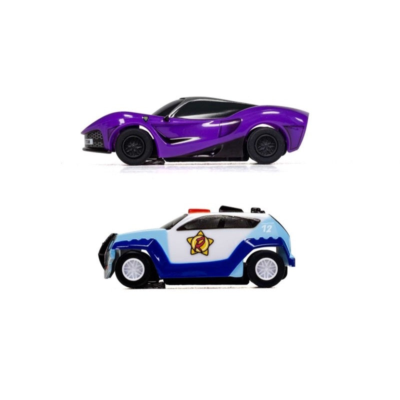 Ryan's World gets his own Micro Scalextric racing set with this Ryan's Street Chase. Ryan's Patrol Car chases down the Dark Titan Racer. Kids will love this with it's Loop-the-Loop stunt track and 9 different layouts.