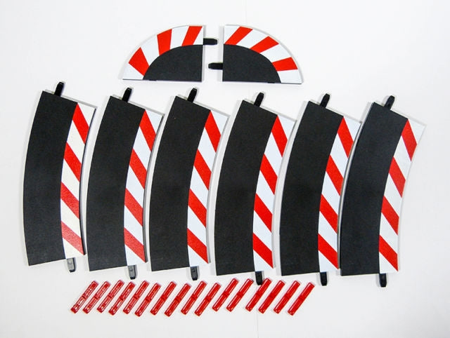 Your Carrera EVOLUTION, DIGITAL 124 and DIGITAL 132 race tracks should be equipped with inside and outside curbs. The red and white curbs not only ensure a harmonious and more authentic overall picture, but also that your slot cars on a scale of 1:24 don't drive out over the track edges. Especially in tight corners where Carrera drivers pull off wild drifts in their cars, the corners should be extended with both the outside and inside curbs. The set includes six inside curbs for a 3/30° corner and two end sections. You can attach the strips to your race track in just a few simple steps. Let your creativity run free as you extend, expand and rediscover your Carrera race track time and time again!