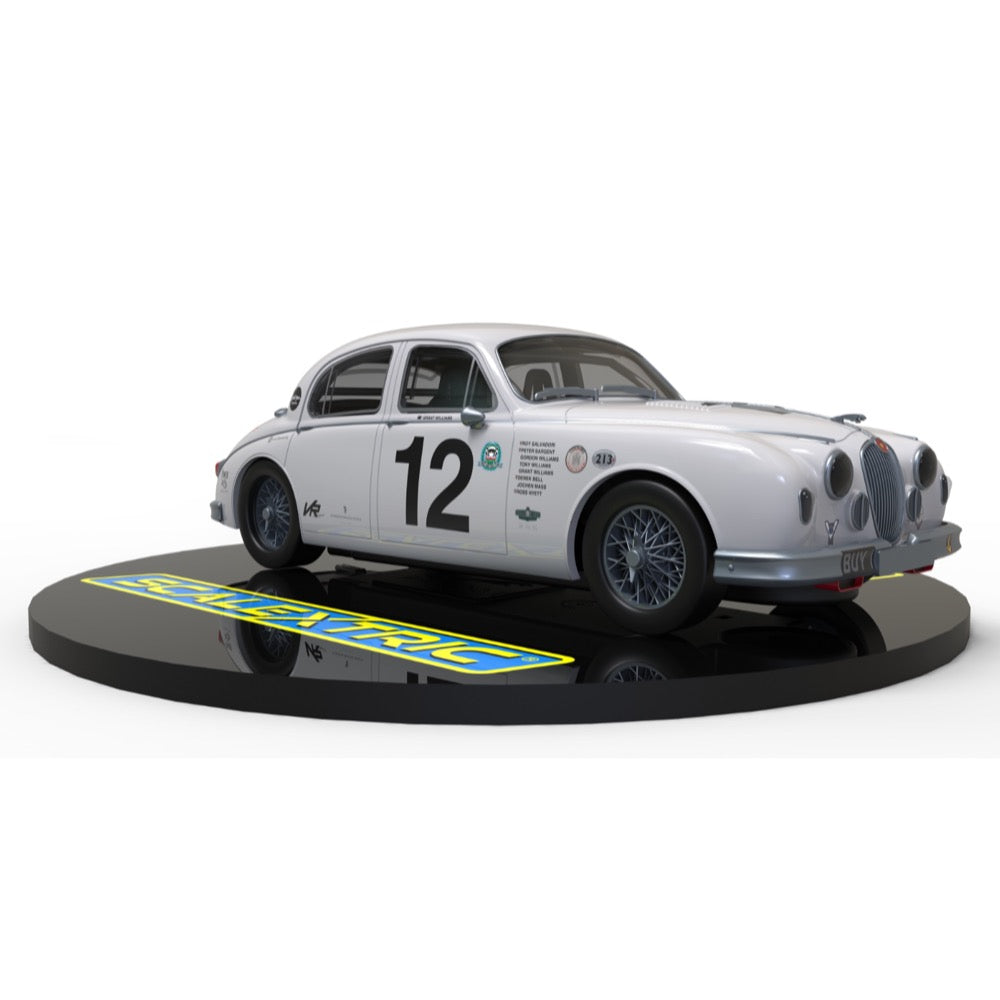 One of the most famous racing Jaguars of all time, the MK1 Jaguar of Grant Williams, registration BUY1, has been driven by countless superstars of motorsport. From Roy Salvadori to Jochen Mass via Derek Bell this Jaguar has had some seriously talented pilots, and its current owner is no slouch either with Grant Williams sliding the big Jag around to great abandon at every opportunity! And now, for the first time ever, one of these famous racing Jaguars is available from Scalextric!