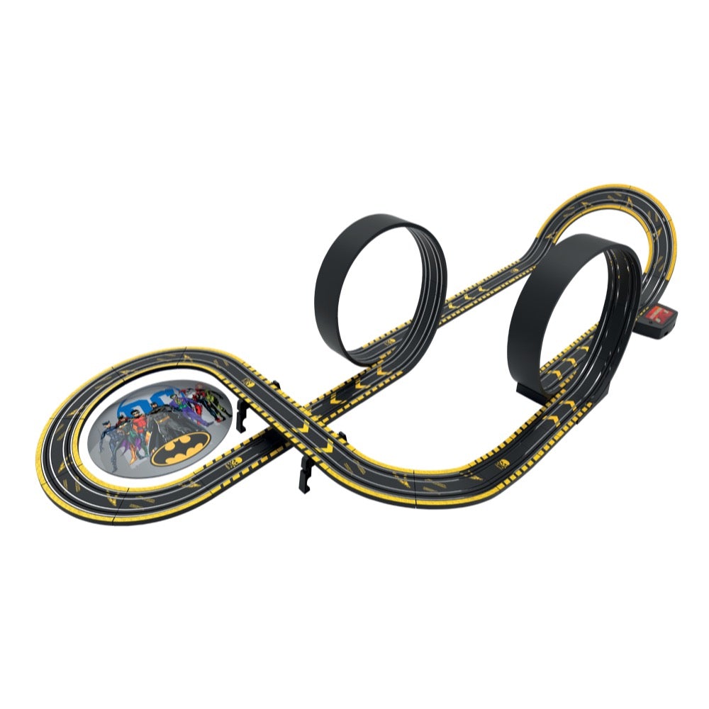 Batman and Joker have been adversaries since the first ever Batman comic over 80 years ago, and in this Batman vs Joker set the race for Gotham City is on! This set contains everything you need to race Scalextric, including two-character cars, a battery-operated powerbase (batteries not included), 5.7 metres of track including 2 loop-the-loops and a half pipe which can create 12 unique layouts, and 2 easy speed limiting hand controllers.