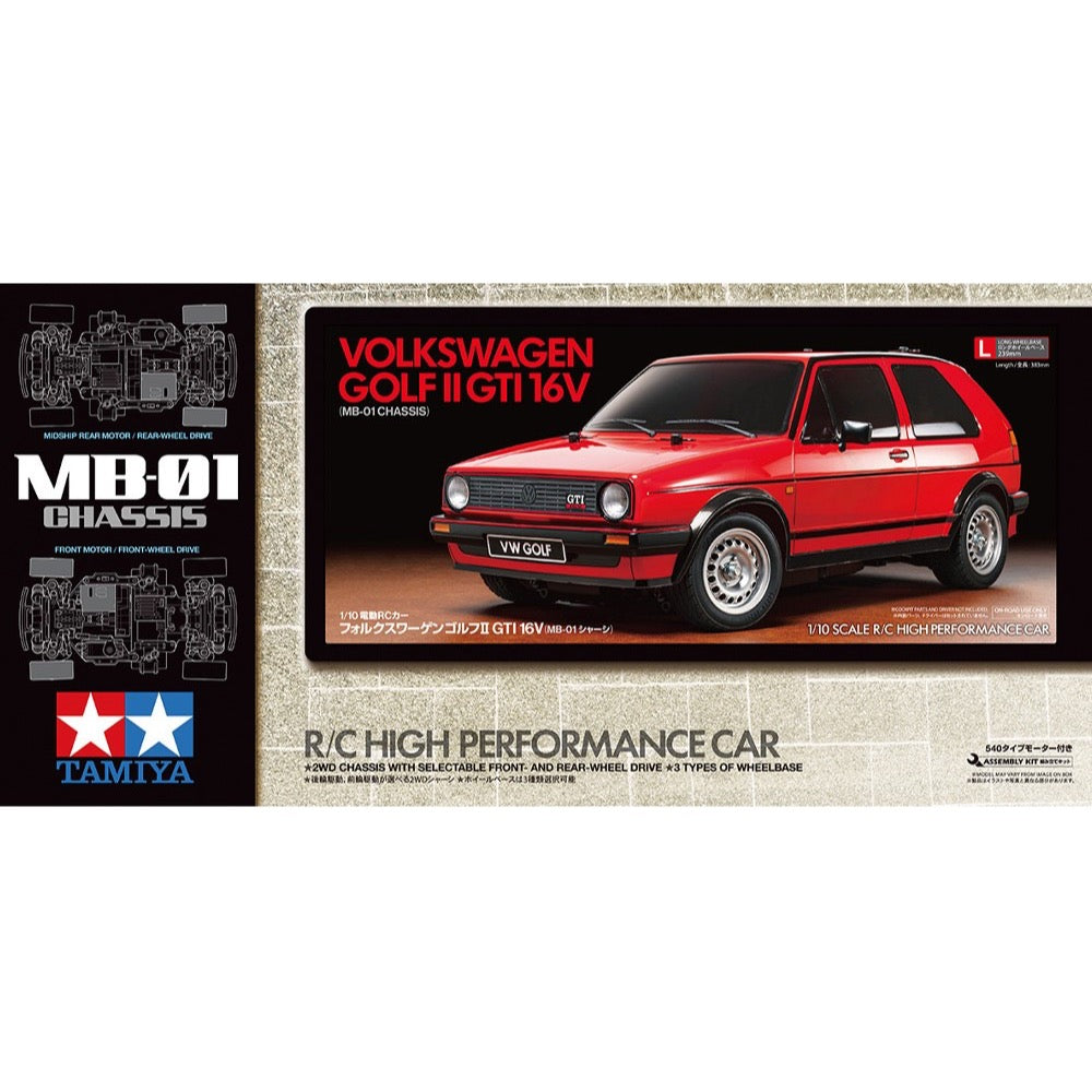 This radio-controlled model assembly kit recreates the Volkswagen Golf II GTI 16valve. The kit is based on the beginner friendly and highly customizable MB-01 chassis, which allows hobbyists to grow as their driving and building skills develop. Like the full-size car it depicts, the chassis configuration on the MB-01 chassis is set up in the front motor, front drive configuration for unparalleled realism.