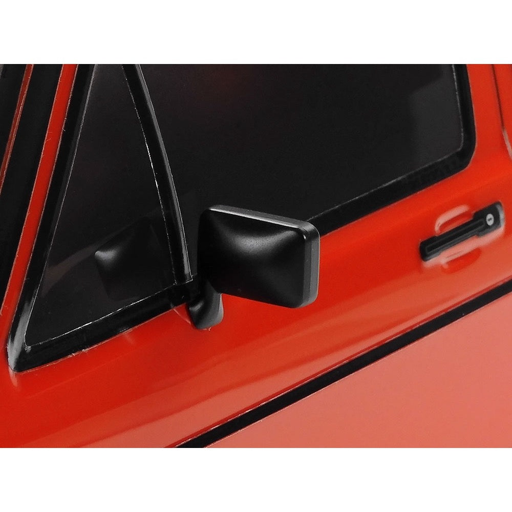 • Separate plastic parts molded in black realistically depict side mirrors and bumpers.