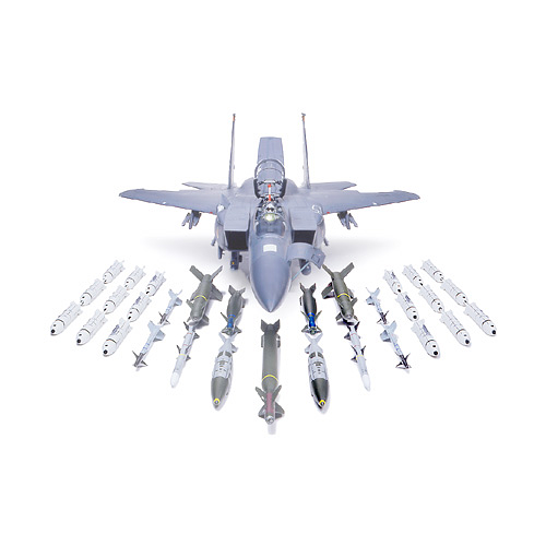 The popular F-15E Strike Eagle (item 60302) was released in 1993. However, since this item's release, the F-15E has come to be equipped with a variety of newly developed weapons systems. Following the changes in times and aviation fighting technology Tamiya has modernized its kit to feature accurate replicas of all the latest weapons systems employed by the F-15E Strike Eagle. Includes parts for replication of the GBU-28 "Bunker Buster", as well as AGM-130 and JDAM guided bombs, and ARAAM air-to-air missiles