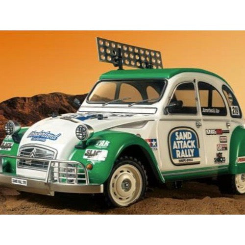 This TAMIYA R/C model assembly kit depicts the Citroën 2CV. The kit features a highly realistic recreation of the body, modified for rally races, and based upon a dedicated rally chassis in the form of the M-05Ra.