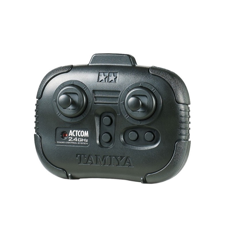 Left stick controls forward/reverse and left/right turning, while right stick controls turret rotation and gun elevation. Main/machine gun firing and engine start/stop can be operated by 4 buttons. Volume adjustment and tank mode change can also be operated by the transmitter.
