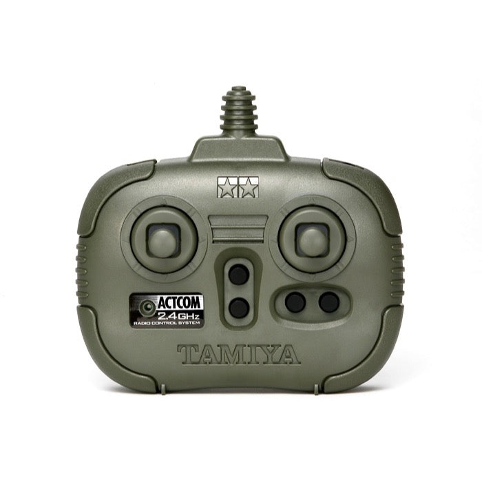 This 1/35 scale assembly kit R/C tank features exciting and realistic maneuverability with sound and light effects. Kit includes pre-assembled gearboxes and turret rotation unit for ease of assembly. Forward/reverse running, left/right turning, sharp turning, and pivoting, as well as turret rotation and main gun elevation/depression can be controlled. The onboard speaker produces realistic sound effects such as engine sounds, main gun firing, damage sounds and explosions. Main gun muzzle flash and hull recoil effect are also reproduced. Tamiya's unique infrared light system will allow you to have battles with two or more tanks. The model features a highly detailed upper hull with lower hull and idler wheels specially designed for R/C operation.