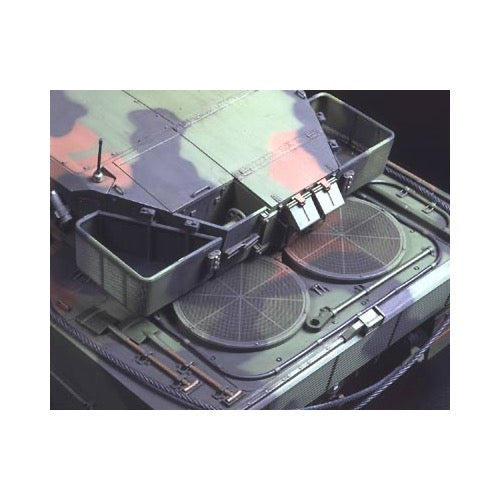 Used by more than 10 European nations, Germany's Leopard 2 tanks are a perfect balance of firepower, protection, mobility and availability. With the Leopard 2A5 regarded as the most powerful tank in the world with superior protection and fire power, the latest Leopard 2, the 2A6, features an even more powerful weapon system. The Leopard 2A5 featured replaceable wedge shaped armor on the turret, improved PERI-R 17 panoramic Commander's sight with thermal vision, spall liner on the turret interior for protection against splinters, all-electric gun control and stabilization system for easy maintenance and reduced noise, GPS navigation system, electro-pneumatic driver's hatch and a CCD camera mounted on the rear of tank for high-speed reversing. The Leopard 2A6 featured improved firepower including a 55 caliber 120mm smoothbore main gun utilizing kinetic energy LKE II ammunition for higher muzzle speed and lethality. The 2A6 has been employed by the German 403 tank battalion since March 2001, and is scheduled to replace all German 2A5 tanks by 2006. The use of the 2A6 continues to spread throughout Europe with the Netherlands, Spain and Greece adopting the 2A6 for their main battle tank. With continued improvements the 2A6 continues to set new standards as the world's best MBT.
