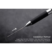 GRIDA is a multi-directional MICRO CHISEL with a mechanical pencil scriber that is practical for panel line scribing from novice to expert. It's specialized for deeper and cleaner re-scribing panel lines. MICRO CHISEL's multi-directional technology is stable when scribing on a flat, curve or irregular shaped surfaces. It can scribe between 0.15mm to 0.20mm lines, and it can scribe up to 0.30mm by scribing multiple times.