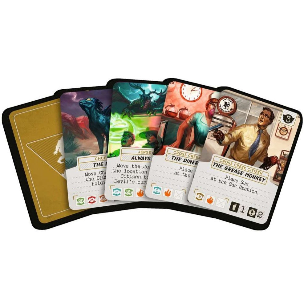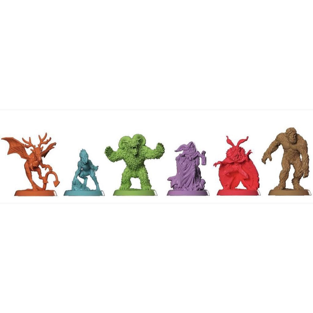 Work together to protect the town of Cross Creek from Bigfoot, the Jersey Devil, Mothman, the Chupacabra, the Ozark Howler, and the Banshee of the Badlands! Each monster requires a different strategy to defeat. Adjust the difficulty by facing different groups of monsters, each represented by a sculpted miniature. Will you be victorious against American’s legendary cryptids?