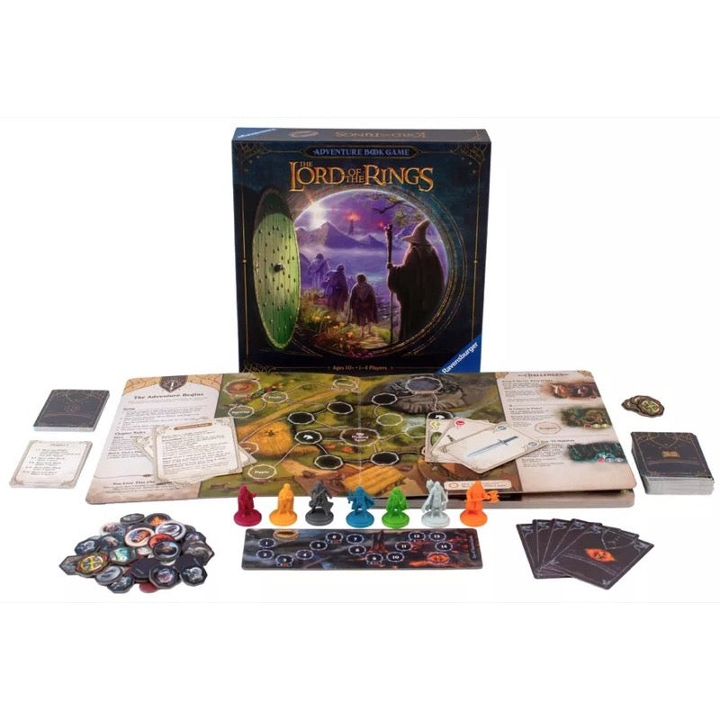 1 Adventure Book game board, 7 character miniatures, 1 Corruption Track, 42 Story cards, 18 Special cards, 15 Plot cards, 5 Eye of Sauron cards, 8 Plot Chart cards, 52 counters, 4 reference cards, and a rulebook.