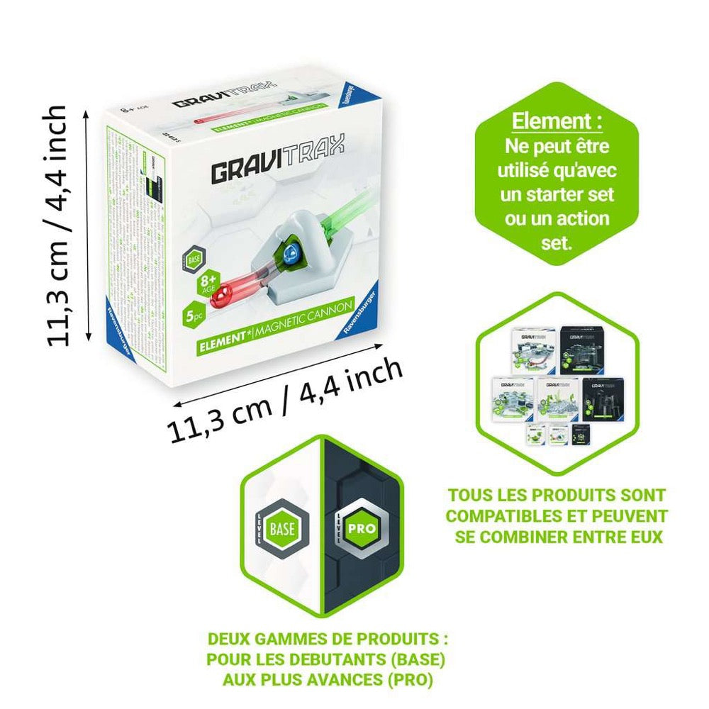 GraviTrax is the all Construction toy STEM track system from Ravensburger! When fully primed the GraviTrax Magnetic Cannon will give the gravity spheres a major boost in speed. If you have to go slightly uphill the Magnetic Cannon will help! Use your imagination to build superb tracks and set the gravity spheres rolling!
