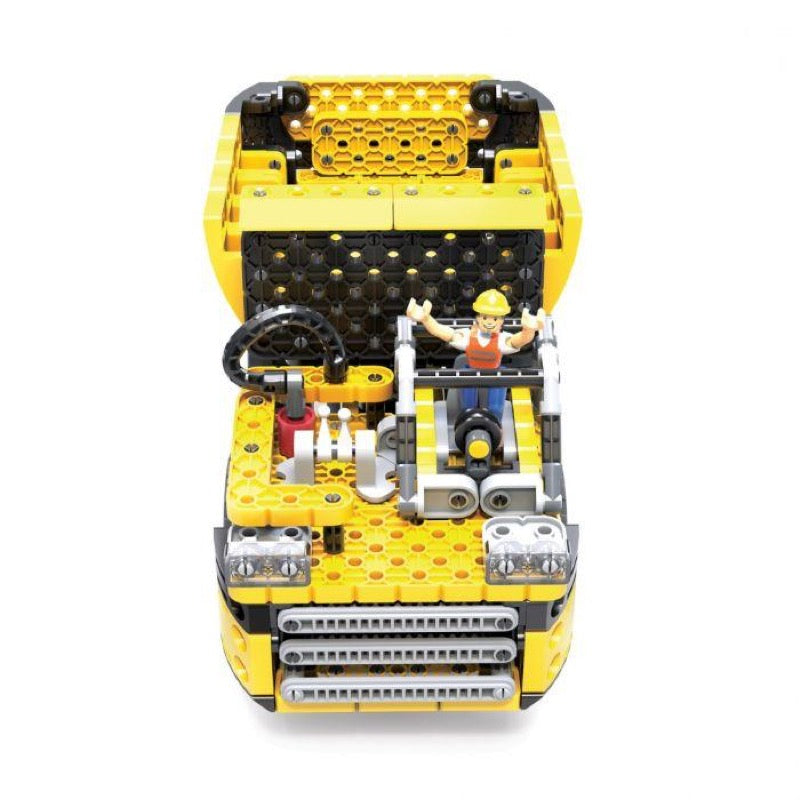 Transport building materials to and from construction sites with the ultimate Dump Truck. Build this vehicle from over 320 pieces and operate them like you would the real thing. With its tilting dump bed and all terrain wheels, you'll be able to skilfully maneuver materials through the toughest terrains. Learn how this machine works, Build your own, and run it just like an operating engineer!