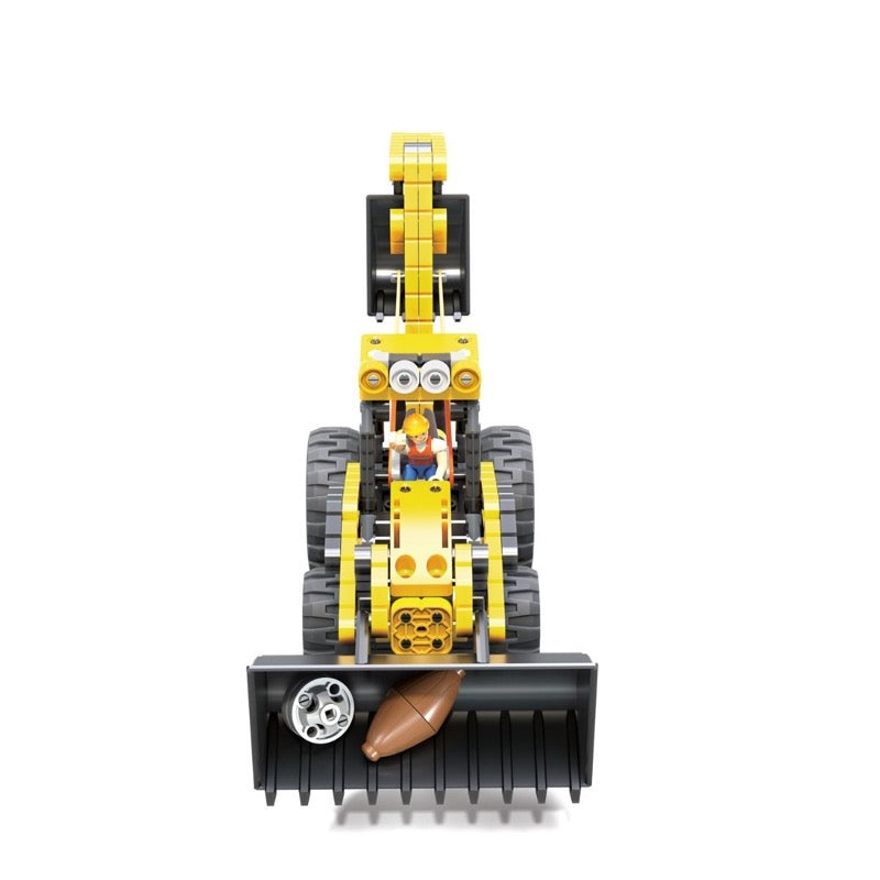 Build this construction vehicle from over 200 pieces and operate it like you would the real thing. Equipped with a front loader and backhoe, this is an essential piece of equipment to have on any construction site. Learn how this machine works, build your own, and run it just like an operating engineer!