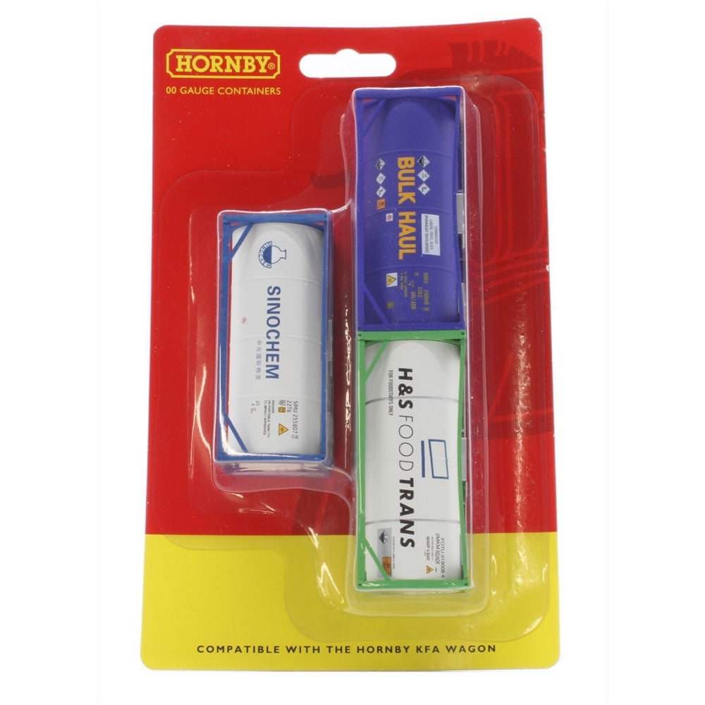 Hornby R60129 OO Sinochem Bulk Haul and H and S Foodtrans Container Pack 3 2pc0ft Tanktainers