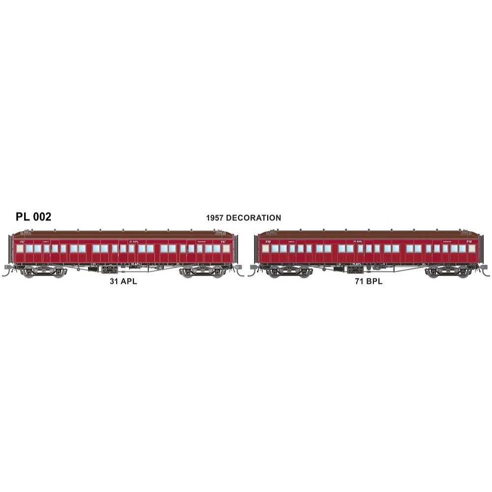 Austrains NEO PL002 HO 31 APL / 71 BPL VR Red PL Series Passenger Carriage Twin Pack