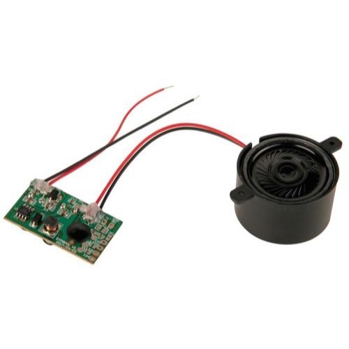 How to connect the sound module to a poser source: Connect the black cable directly to one oft he two light current outputs oft he transformer. Connect the red cable to the other light current output of the transformer.  Now you can hear a permanent sound. If desired you can make the sound switchable. For this you can use a switch or a control panel (not included in the scope). Interrupt the electric circuit with this on/off switch at the red cable.