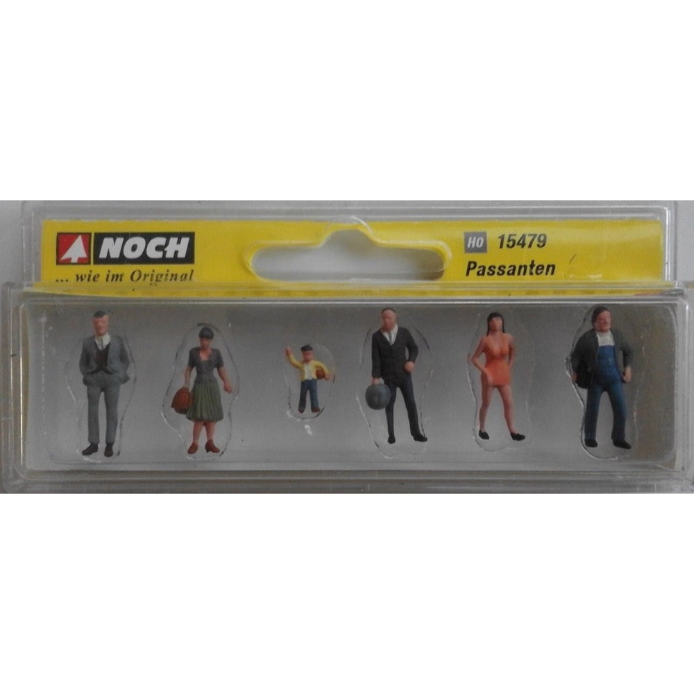The set contains six standing figures for H0 gauge. A gentleman in a gray suit and a girl in a yellow minidress stand waiting. Another man wearing grey pants and a brown jacket carries a large bag. A young mother in a green pleated skirt is holding her little son by the hand. A worker in blue working pants and brown-green jacket stands waiting. This set is ideal for decorating town or village scenes on model railway layouts. The model figures are especially suitable for the design of platforms and bus stops.