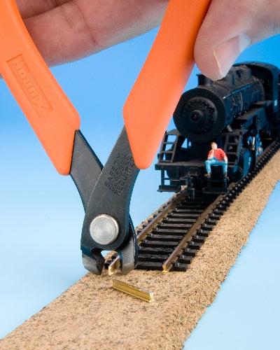 A Xuron® Track Cutter specifically designed for vertical cutting of model railroad track that has been secured to the roadbed as well as Markin® brand C Track. Like the original Model 2175B Track Cutter, this tool has hand grips that are sized to provide optimum leverage and control.  For use with model railroad track HO scale and smaller. Not recommended for cutting hard wire or nichrome wire.