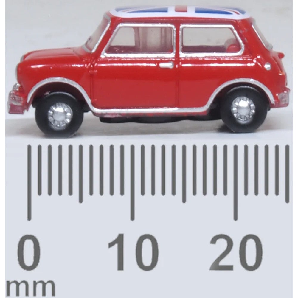 Its launch in 1:120 scale replicates its larger Oxford predecessors in exact detail. Registered NLG 465B from 1964, our Austin Mini Cooper appears in bright red with a patriotic Union Flag masked red, white and blue on the roof. The external trim sees lots of chrome detailing to wheels, window surrounds, door handles, bumpers and headlight surrounds, as well as the Austin Cooper badge above the black and silver radiator grille. The interior is red with a black steering wheel.
