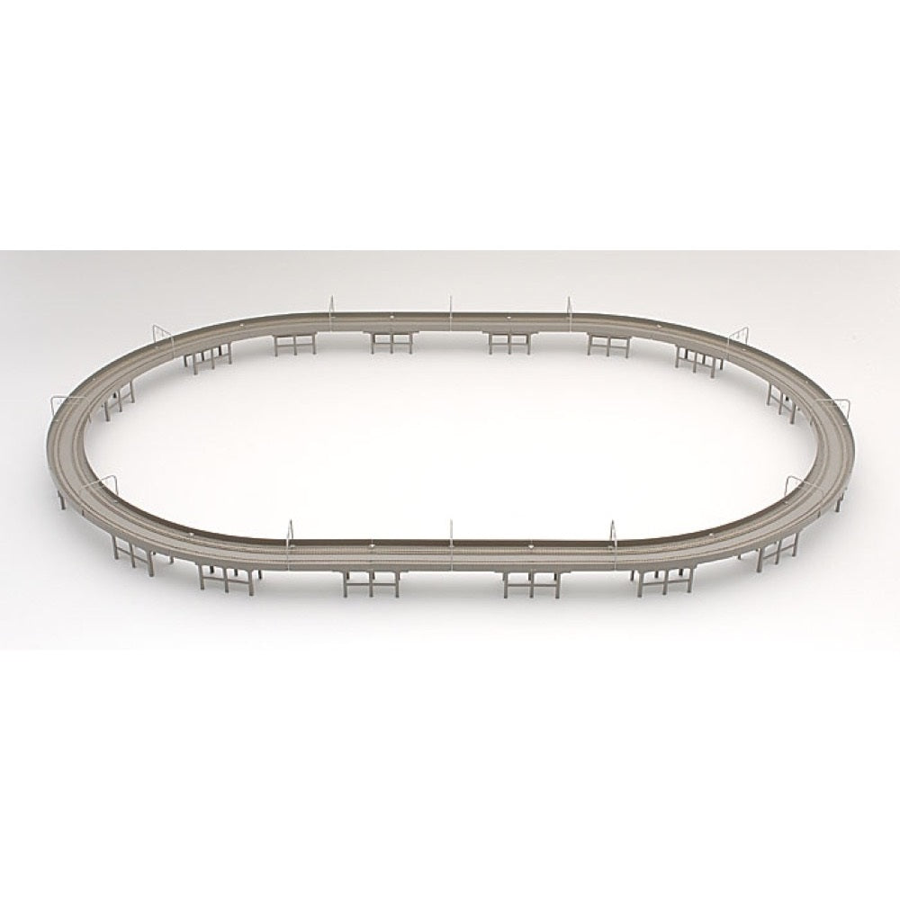 This is a double track rail set that reproduces a concrete slab trackbed. The entire line is elevated, with an oval rail pattern.