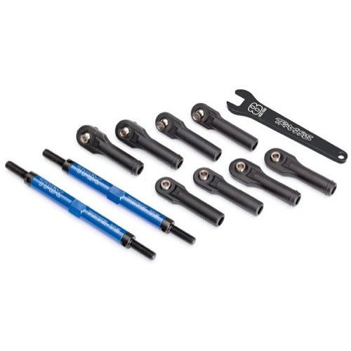 Traxxas TUBES aluminum toe links are lighter than steel and stronger than titanium. The secret lies in their unique hollow tube design which maximizes rigidity while reducing weight. Made from high-grade 7075-T6 aluminum, TUBES feature a brilliant anodized finish for extra style. A handy machined groove identifies the left-hand threads and the included aluminum wrench helps prevent marring while adjusting the turnbuckles.