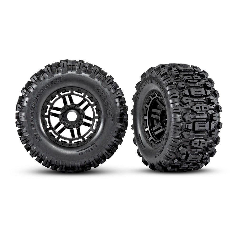 Tires & wheels, assembled, glued (black wheels, dual profile (2.8" outer, 3.6" inner), Sledgehammer tires, foam inserts) (2) (17mm splined) (TSM rated)