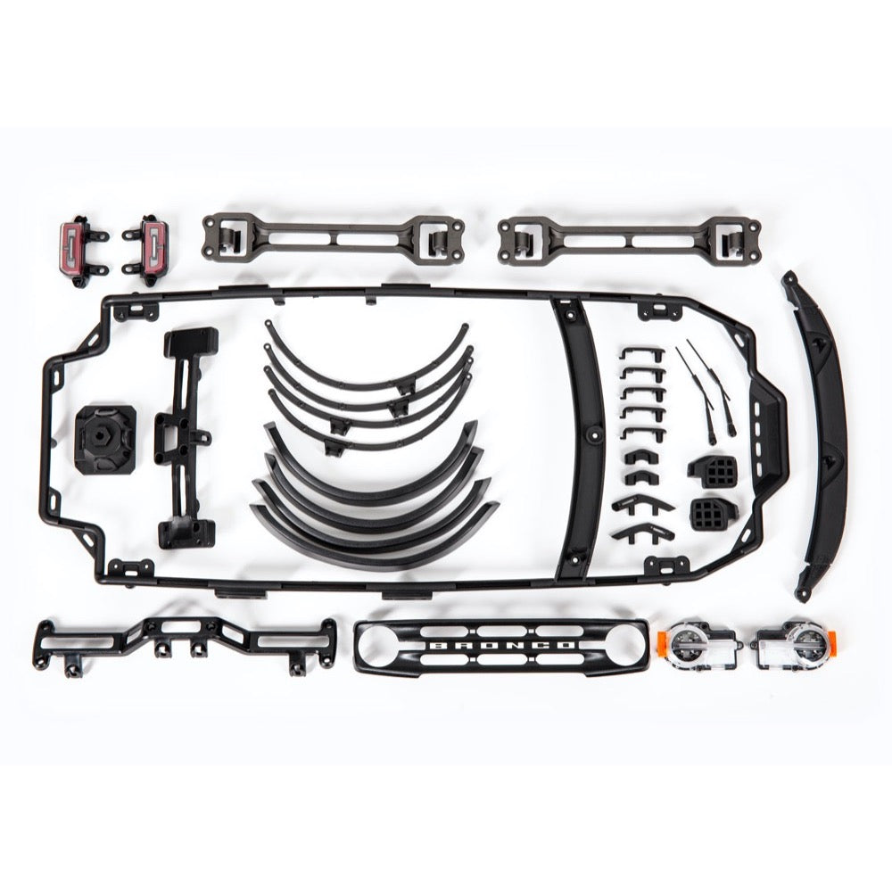 From mild to wild, Traxxas clear bodies are your own personal canvas. You choose the color and design and Traxxas ProGraphix® paint makes it easy to get professional quality results. The clear TRX-4® Ford® Bronco body kit comes fully-trimmed with pre-drilled body holes for easy mounting. The kit includes clipless body frame, body accessories, fender flares, mounting hardware, window masking, and decals. Requires 8080X inner fenders.