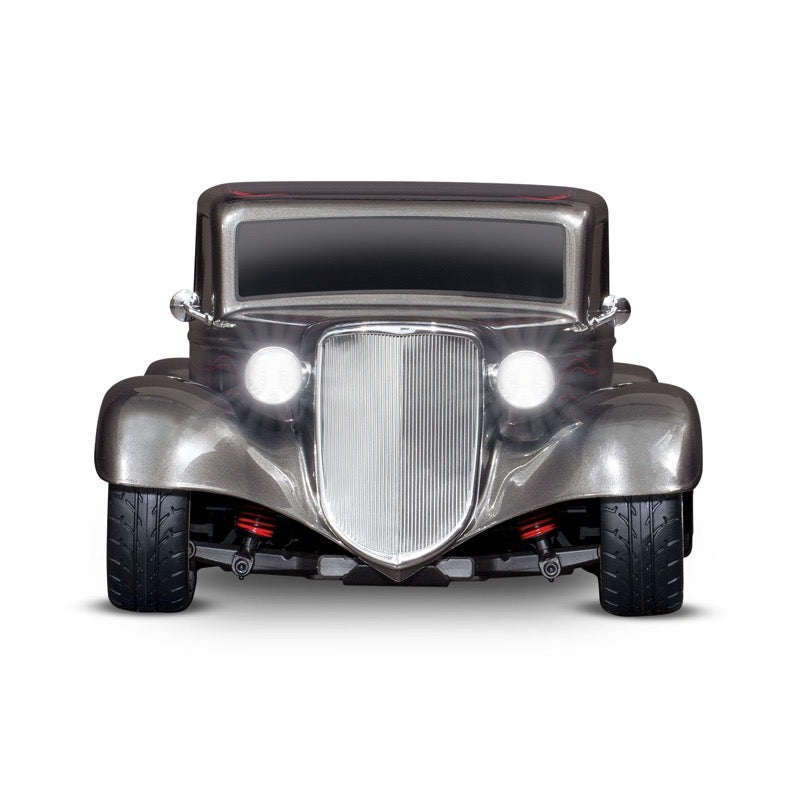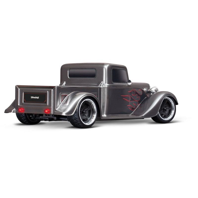 A steeply-raked chrome grille flows into the long narrow hood and aggressively chopped roof. Chrome headlights flank the sculpted fenders with full running boards. Deep, lustrous paint and wild graphics complete the package. The look is pure classic hot rod and Traxxas brings this timeless style to life in 1/10 scale.