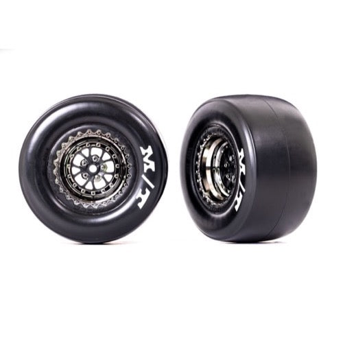 Traxxas 9476X Drag Slash Mounted M/T Drag Slicks Sticky Compound Black Chrome Weld Tyres and Wheels Rear 2pc