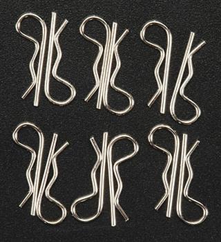 Traxxas replacement body clips. They can be used on Traxxas or most other brands of cars. These are metal clips are silver in color.