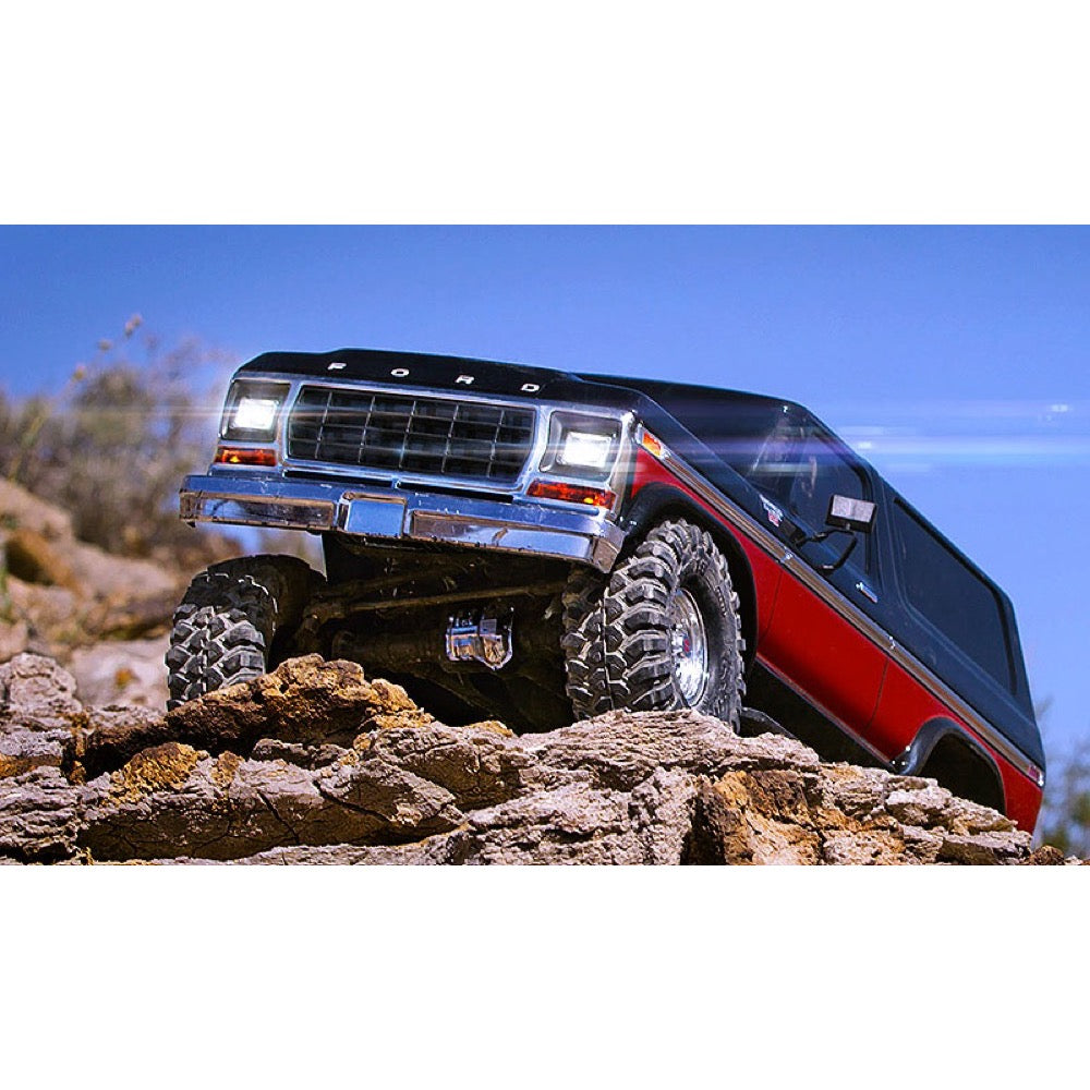 The Traxxas TRX-4 1979 Ford Bronco sets the standard for scale appearance out on the trail. The LED Light Kit (#8035) takes scale realism to the next level with working headlights, tail lights, and side markers. Fully waterproof and built Traxxas-Tough, the LED light kit is ready for your wildest adventures. No matter where the trail leads, day or night, the TRX-4 1979 Ford Bronco will blaze a path.