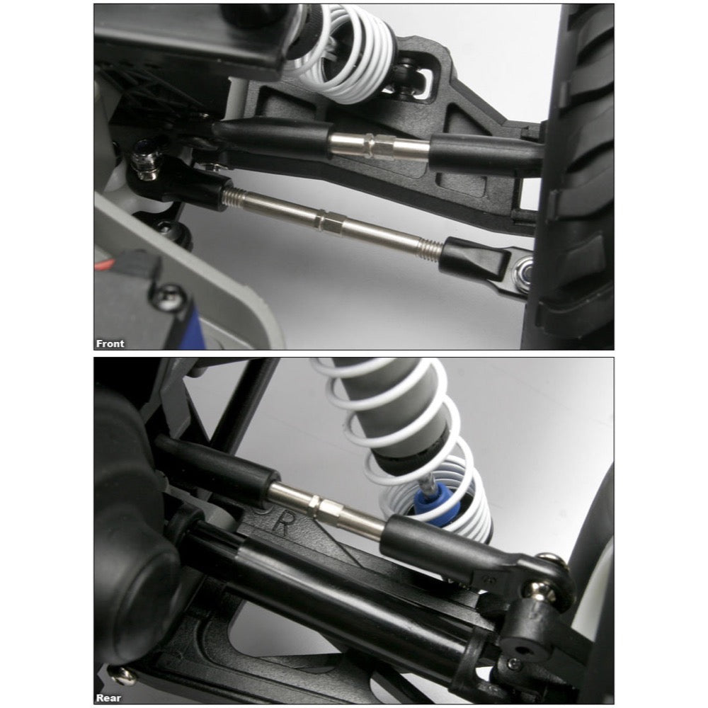 Heavy duty steel turnbuckles allow camber and toe tuning. Slash is completely adjustable right out of the box to fine tune handling agility and high-speed performance.Captured rod ends provide unmatched durability and they won't pop off.