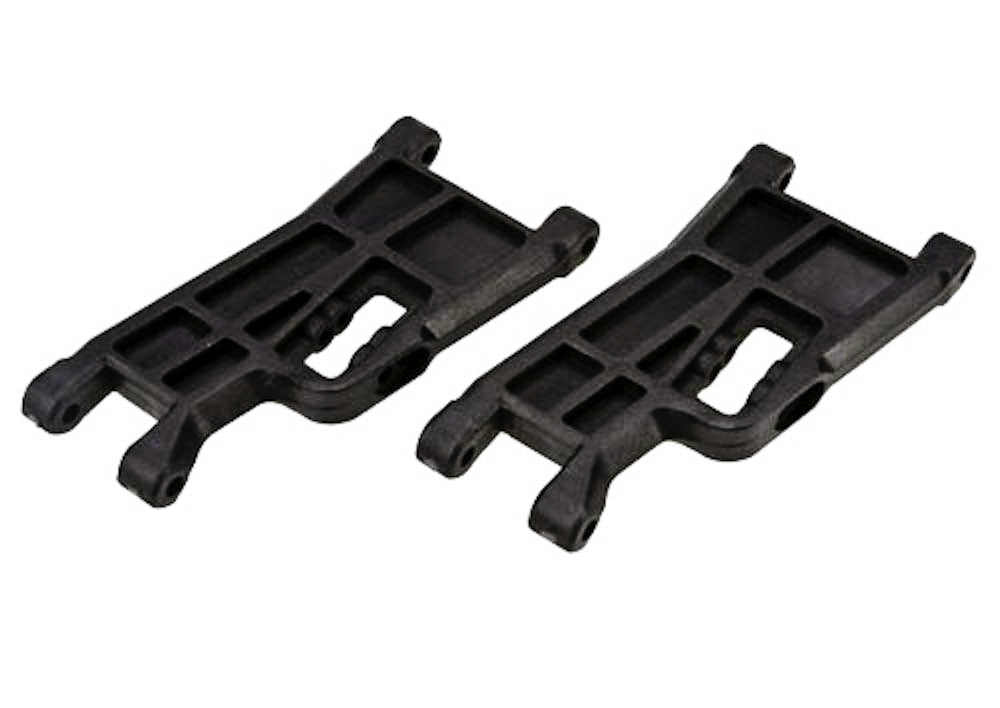Traxxas replacement front suspension arms for many Traxxas kits. These are located on the front bulkhead and are held on by suspension pins. The arms are constructed of black nylon. This package includes two black nylon suspension arms and will work on the Bandit, Nitro Stampede, Nitro Rustler, SRT, and the Nitro Sport.