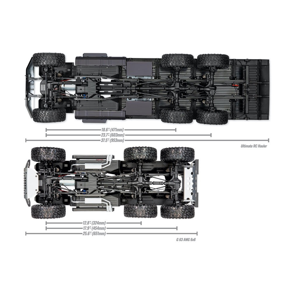 One look at the new TRX-6® Ultimate RC Hauler and you’ll know this truck means business. Based on the hugely capable TRX-6 platform, the RC Hauler is the biggest and baddest rig in the TRX lineup. The tough looks are backed up with even tougher performance. The rear bed features adjustable wheel chocks and tie-down bands to haul and display 4-Tec® models with style. A highly detailed LED lighting system and black-over-black chrome body accessories give the Hauler a tough, menacing look. The Ultimate RC Hauler is built Traxxas Tough™ with portal axles, high/low transmission, and T-Lock™ remote locking differentials. When you’re ready for big-scale RC fun, nothing comes close to the Traxxas Ultimate RC Hauler.