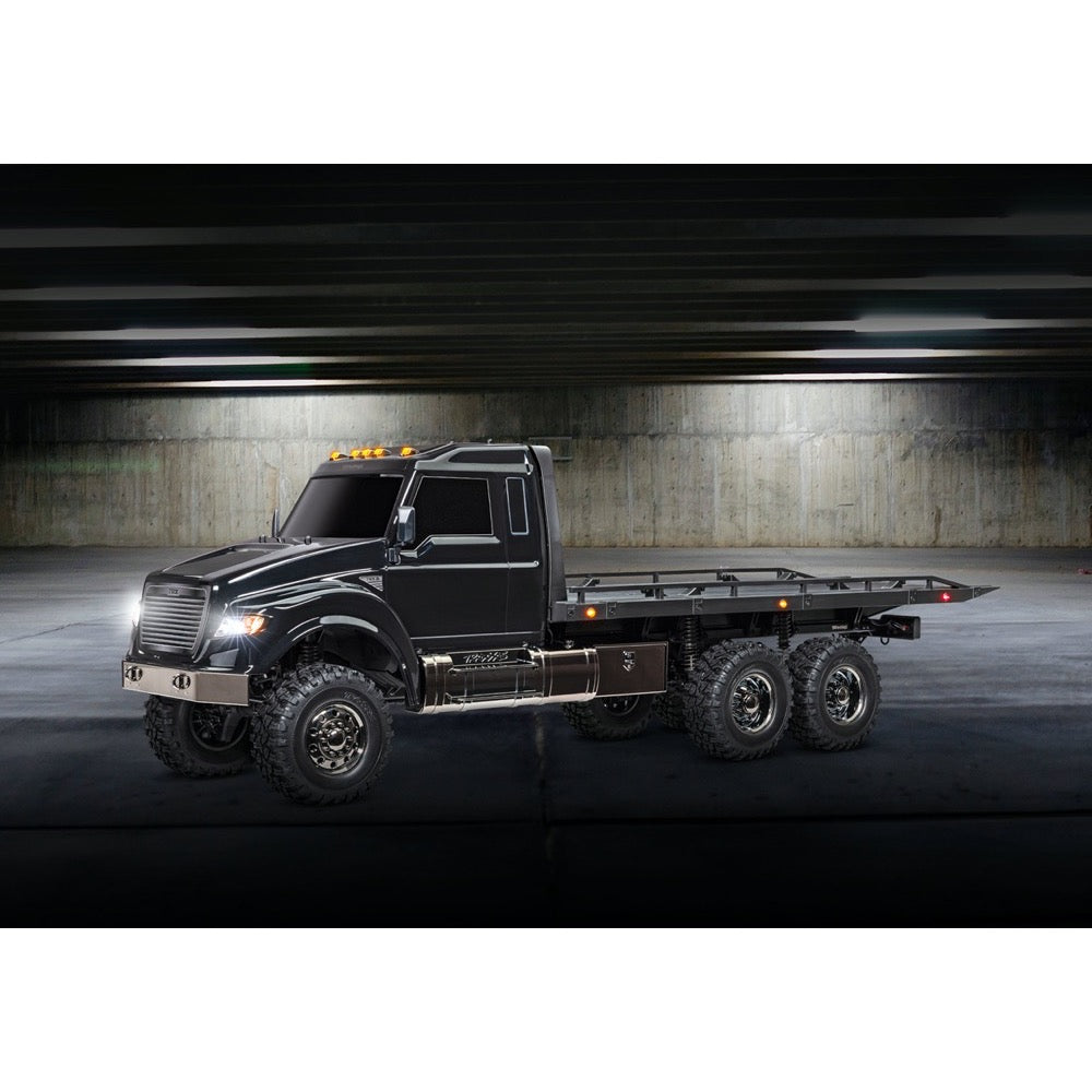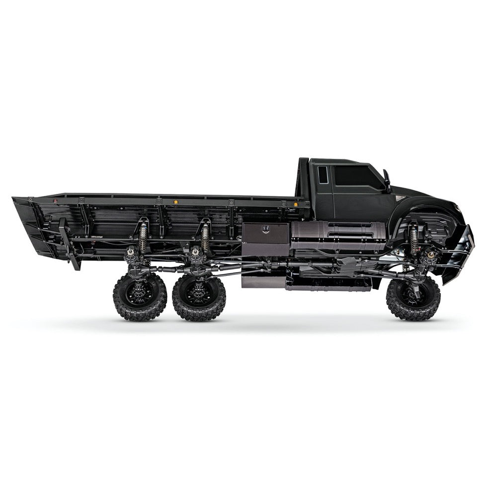 Based on the hugely capable TRX-6 platform, the RC Hauler is the biggest and baddest rig in the TRX lineup. The tough looks are backed up with even tougher performance. The rear bed features a working electric winch, adjustable wheel chocks, and tie-down bands to haul and display 4-Tec® models with style. A highly detailed LED lighting system and black-over-black chrome body accessories give the Hauler a tough, menacing look. The Ultimate RC Hauler is built Traxxas Tough™ with portal axles, high-low transmission, and T-Lock™ remote locking differentials. When you're ready for big-scale RC fun, nothing comes close to the Traxxas Ultimate RC Hauler.