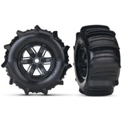 Tires & wheels, assembled, glued (X-Maxx black wheels, paddle tires, foam inserts) (left & right) (2)