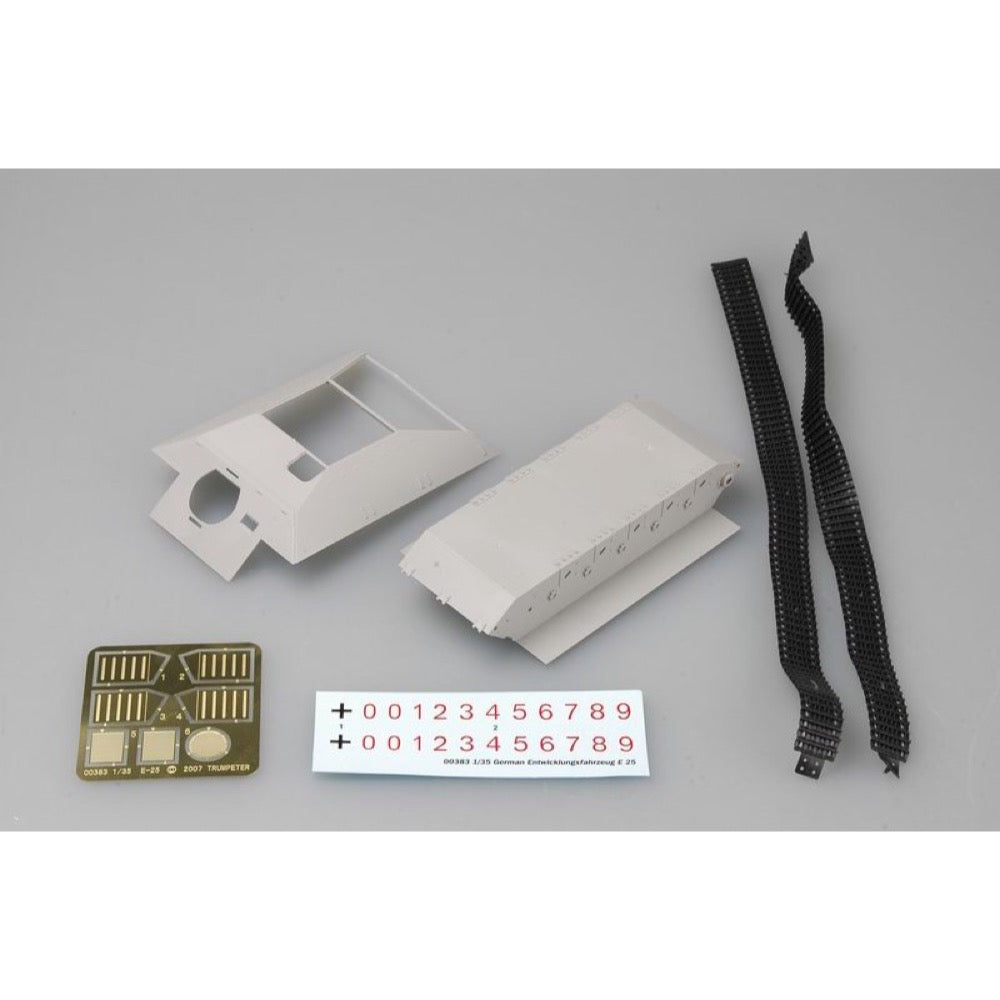 The E 25 was the second largest Panzer in the Entwicklungsfahrzeug series created by Oberbaurat Kniepkamp of Wa Pruef 6 .The detailed design contract was awarded to Argus Werke in Karlsruhe, with the design project directed by Dr. Klaue. The E 25 was to have rear drive and share many parts with the E 10. In January 1945, the Entwicklungskommission decided that this design was still worth pursuing as it again filled a vacancy in the Panzerprogramm for vehicles in the 25 ton class. A drawing shows the E 25 outfitted with a 7.5 cm Pak L/70 gun mounted on the glacis plate. Selection of a weapon for series production hadn’t been determined in January 1945. Only a few Versuchsfahrgestell were ordered. The design had not proceeded far enough to consider mass production. According to Oberbaurat Kniepkamp in postwar interrogations, three E 25 hulls were reported to be at Alkett in Berlin-Spandau, but they were no longer there when Western Allies went to investigate.