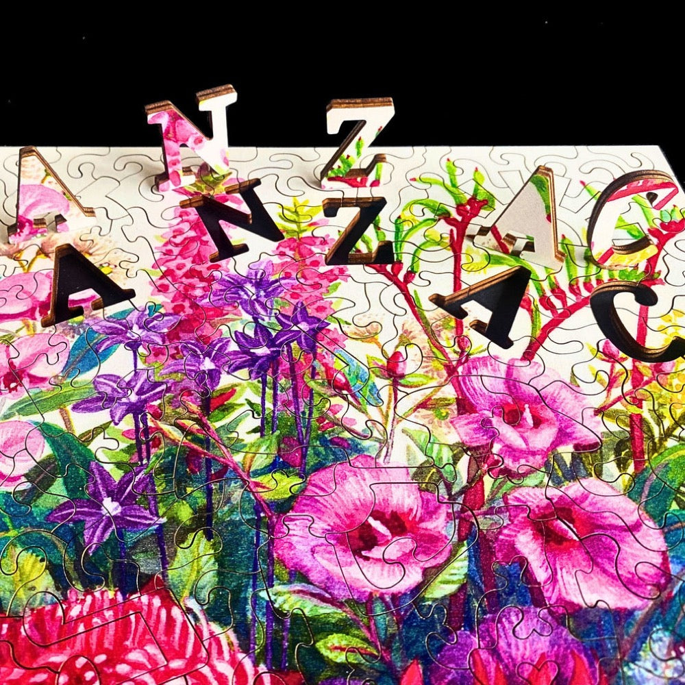 The jigsaw pieces of this puzzle are a tribute to the ANZACS, you will have to build a soldier and a memorial. It also includes trumpets, candles, lettering of the ANZAC, the rising sun, medals and so much more.