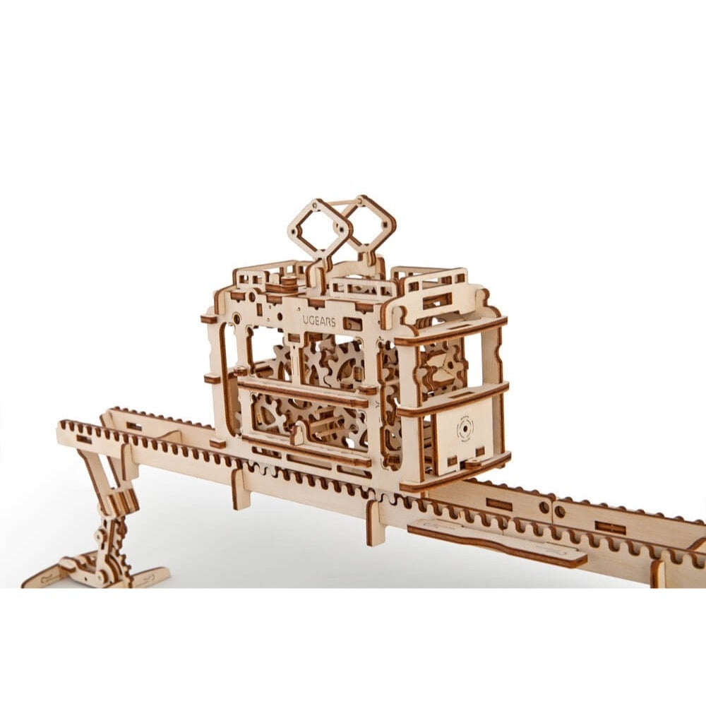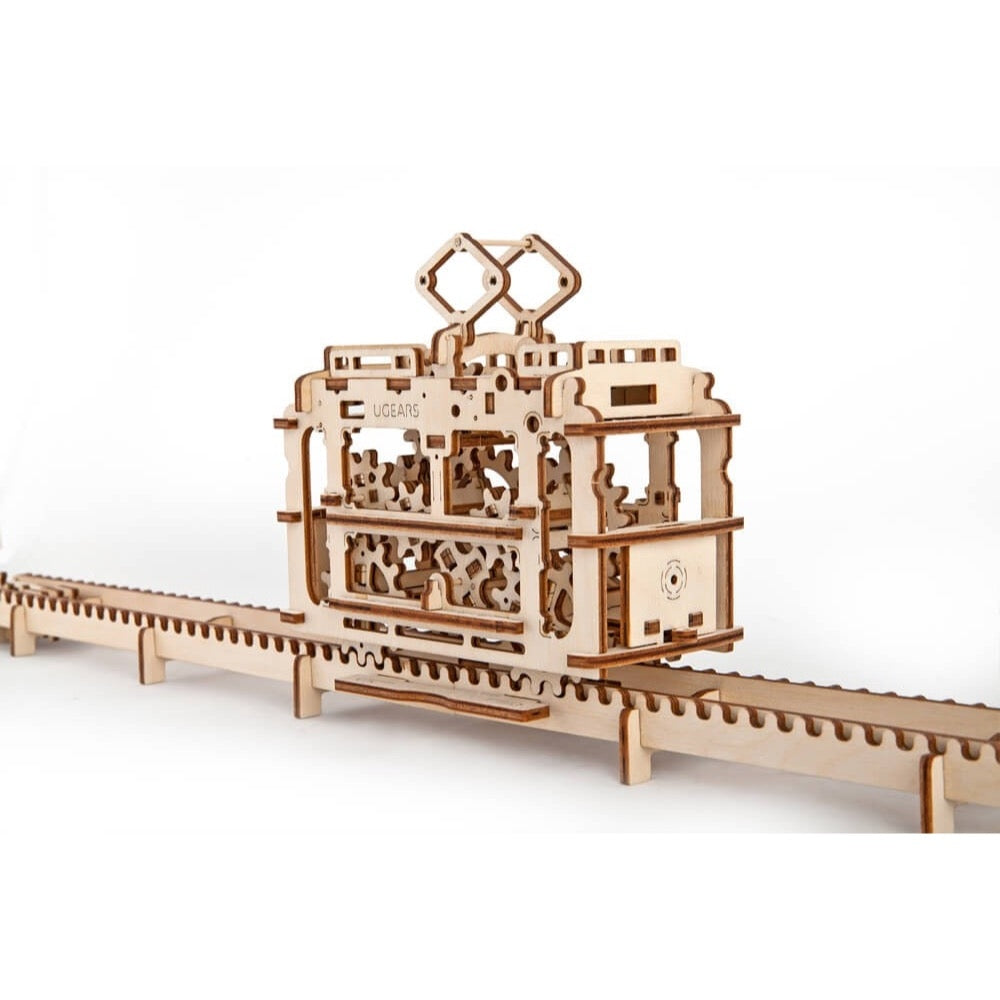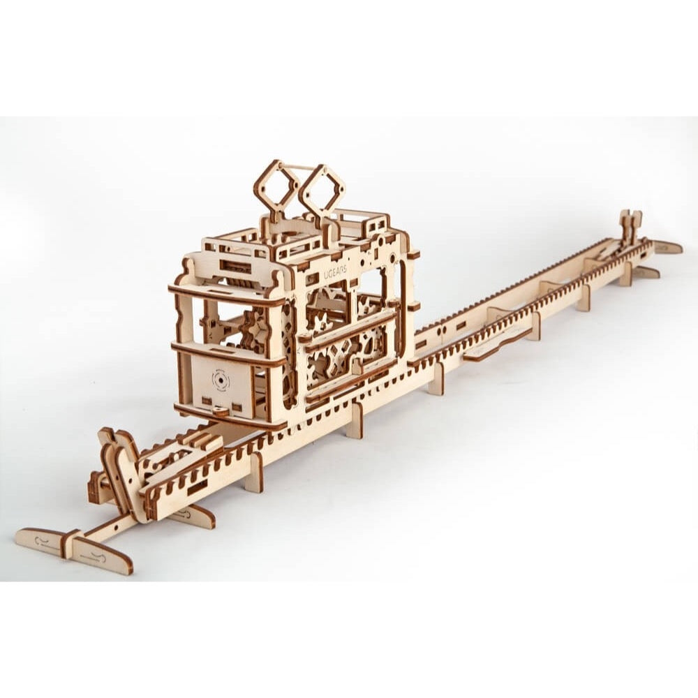 A tram (also known as “tramcar,” “streetcar” or “cable car”) is one of the oldest forms of urban transportation. The UGEARS Tram is inspired by the earliest streetcars and funiculars and is probably the most romantic model in our catalog. In addition to displaying a great deal of retro flair, the Tram can actually travel on its included adjustable tracks. In level mode the Tram cruises the rails under the power of its wind-up rubber band motor. In incline mode the Tram simply employs the power of gravity along with its gear-drive transmission to gracefully scale down tracks. The Tram even has a hidden box for carrying messages to a special passenger waiting at the next stop.