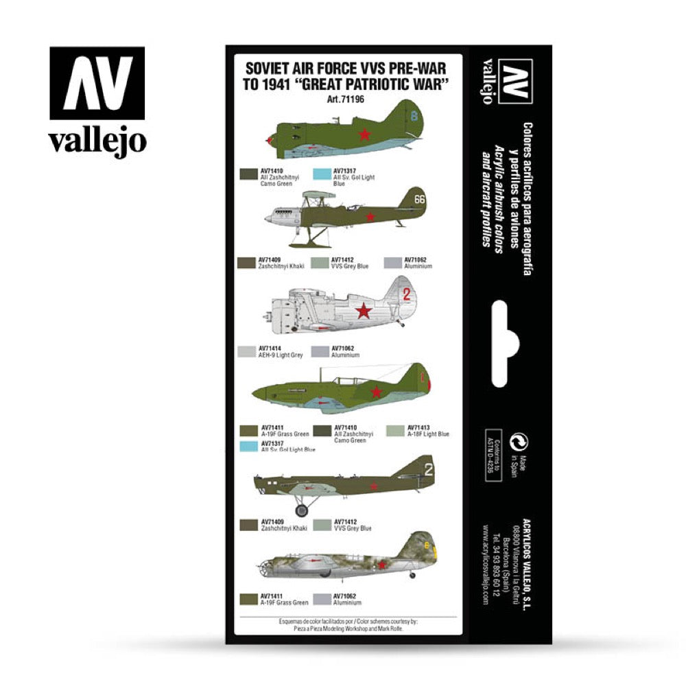 Vallejo 71196 Model Air Soviet Air Force VVS Pre-War To 1941 Great Patriotic War 8 Color Set