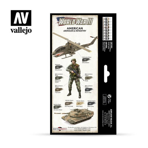 Vallejo 70220 Model Color WWIII American Armour and Infantry Acrylic 8 Color Paint Set
