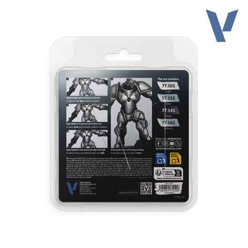 Vallejo 77251 True Metallic Metal Sterling Silver 4 Colour Paint Set