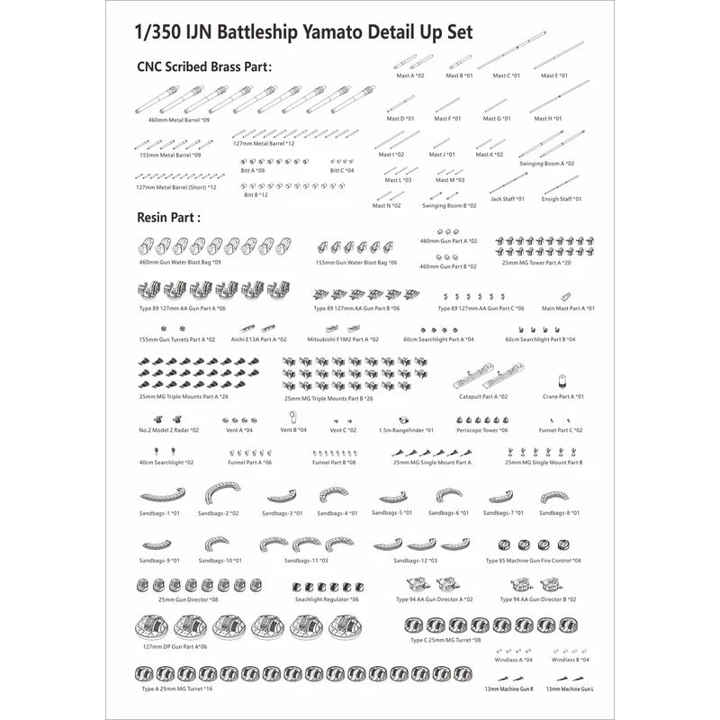 Very Fire BELBV350902UP 1/350 IJN Yamato Detail Up Set