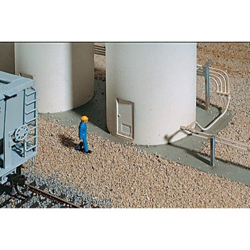 When assembled, the Plastic Pellet Transfer is great by itself at trackside as a truck reload point for local deliveries. It's easily combined with other big industrial buildings, especially those in modern industrial parks, to create a custom plastics plant anywhere along your line. You can also use it model other types of pneumatic storage and delivery systems like those found at commercial bakeries, flour mills, chemical or fertilizer plants and many, many other industries found at modern industrial parks.