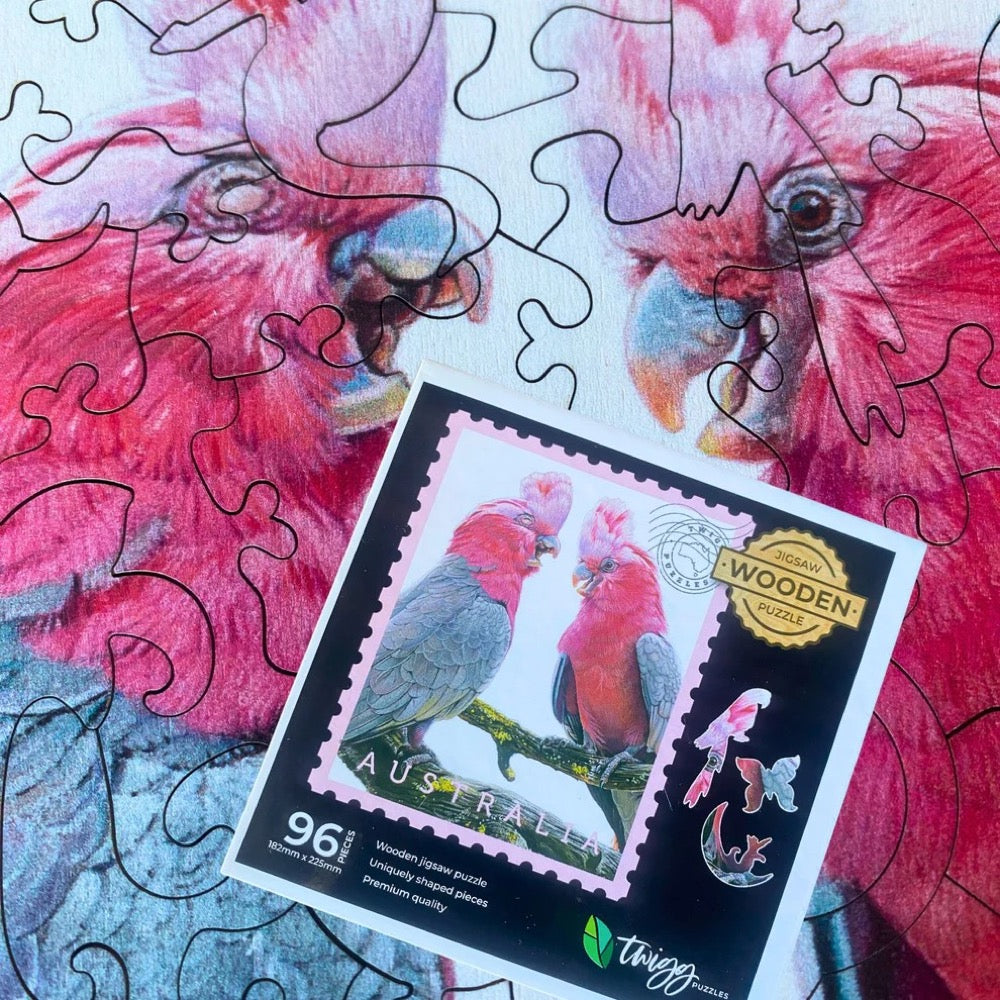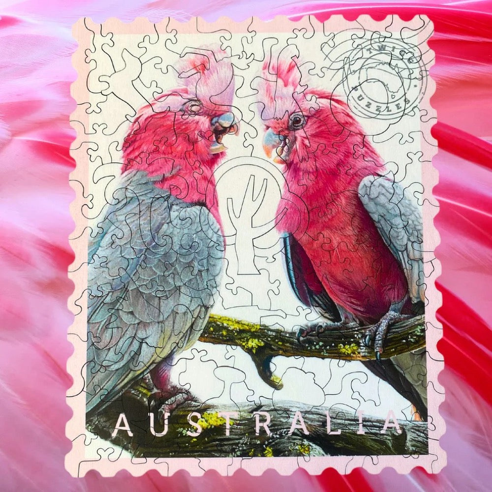 This is a new puzzle to add to our Sally Edmonds stamp collection. The deep hues of pink and grey captured in this piece of art really makes for a cute and colourful puzzle & makes you want to join them in their "chatter".